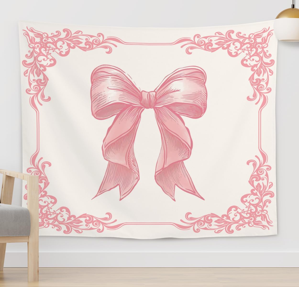 ISANOU Coquette Pink Bowknot Tapestry Wall Hangin,Home Dorm Bedroom Living Room Decor,Coquette Aesthetic Tapestries,Gifts for Women Teen Girls,50x60 Inches